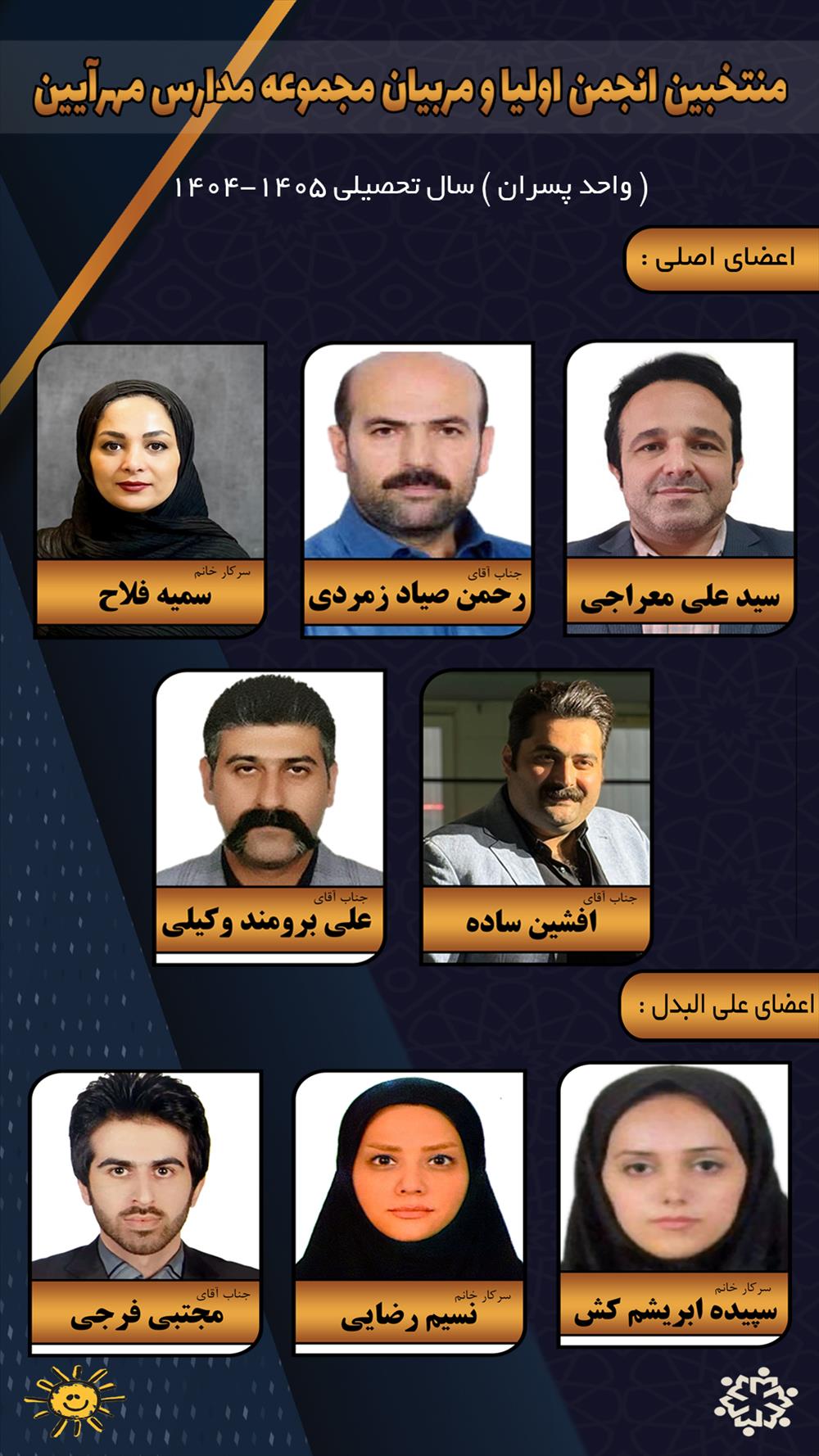 لازمبه ذکر است اعتماد اولیای گرامی نیز نشان از توانمندی و دلسوزی این عزیزان دارد و یقین داریم که با همکاری، همدلی و استفاده از تجربیات ارزشمند آنان، شاهد دورهای پربار و موفق برای پیشبرد اهداف عالی آموزشی و پرورشی مدرسه خواهیم بود.